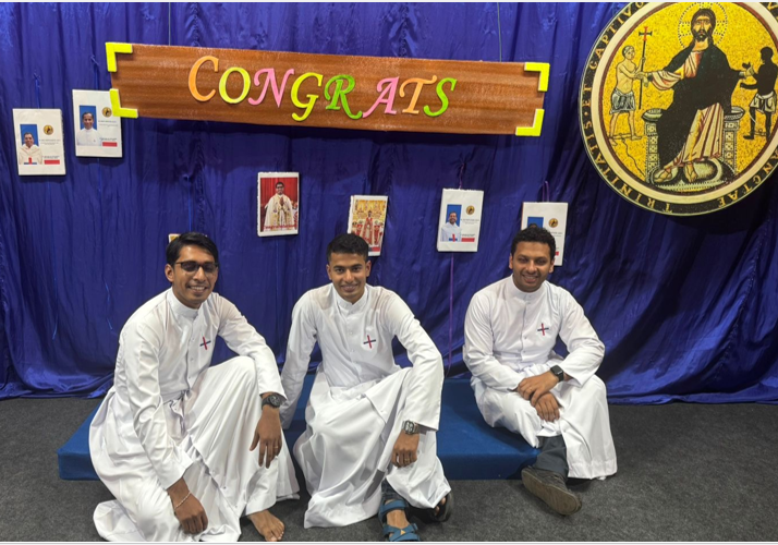 The community warmly welcomed the newly ordained priests, namely, Frs. Bibin, Anugragh and Jeevan.